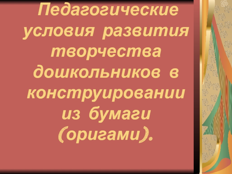 Педагогические условия развития творчества дошкольников в конструировании из бумаги (оригами).