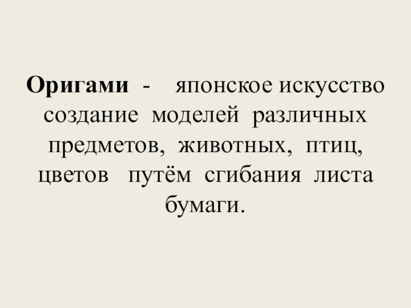 Слайд 4Оригами - японское искусство создание моделей различных предметов, животных, птиц,