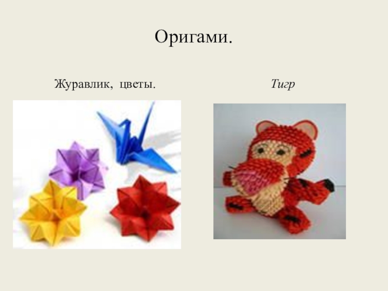 Оригами.Журавлик, цветы.Тигр