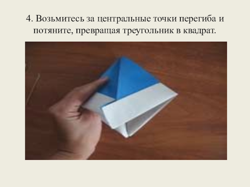 4. Возьмитесь за центральные точки перегиба и потяните, превращая треугольник в квадрат.