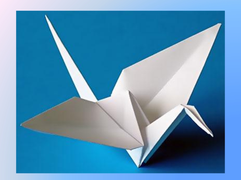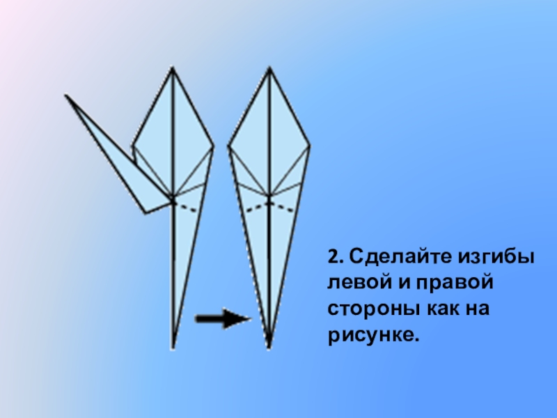Слайд 104. Сложите одну из сторон (любую) чтобы сделать голову, затем сложите крылья.