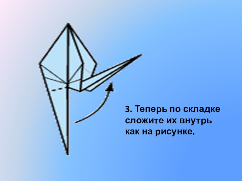 Слайд 93. Теперь по складке сложите их внутрь как на рисунке.