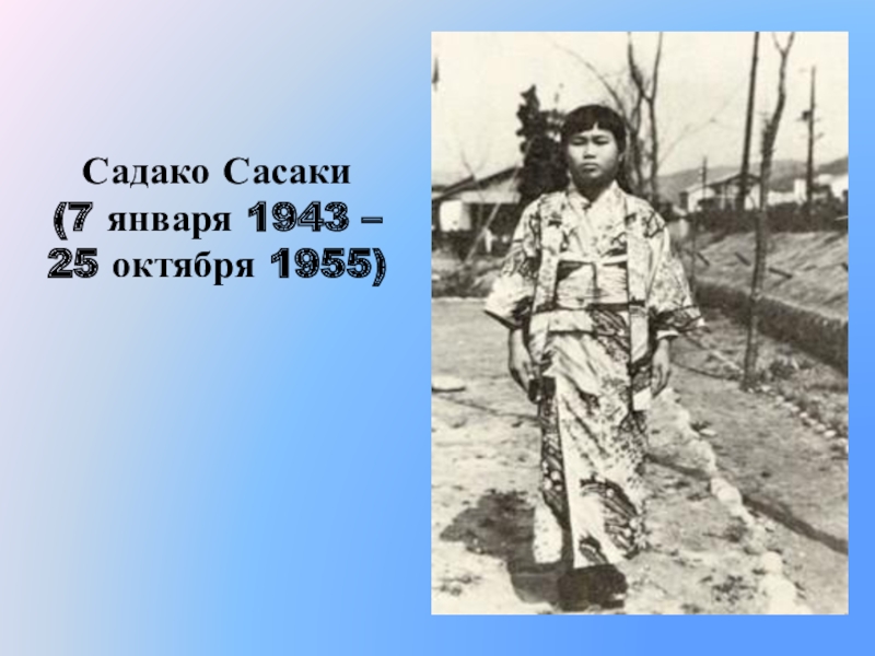 Слайд 3Садако Сасаки (7 января 1943 – 25 октября 1955)