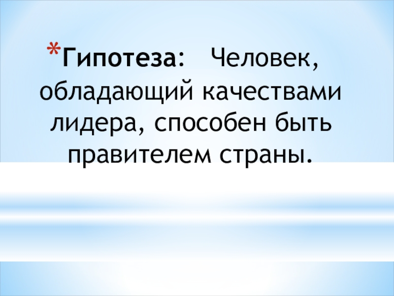 Гипотеза:  Человек, обладающий качествами лидера, способен быть правителем страны.