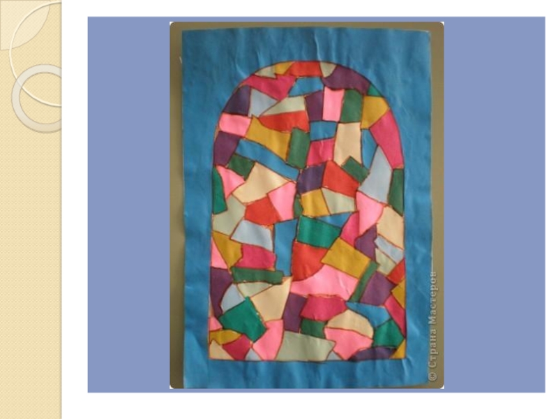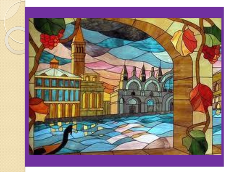 Слайд 10Древняя техника витража — мозаичный набор из фигурных кусочков стекла — стала активно