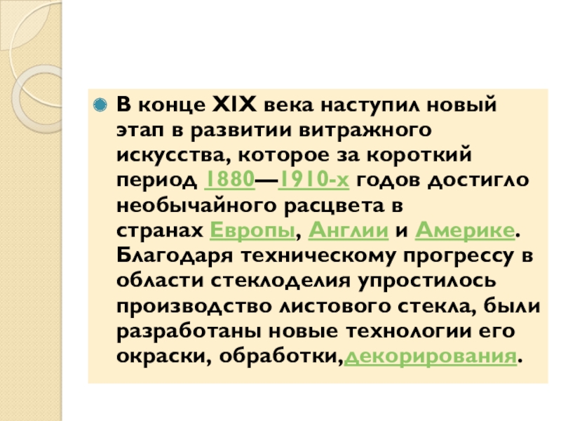 Слайд 9В конце XIX века наступил новый этап в развитии витражного искусства,
