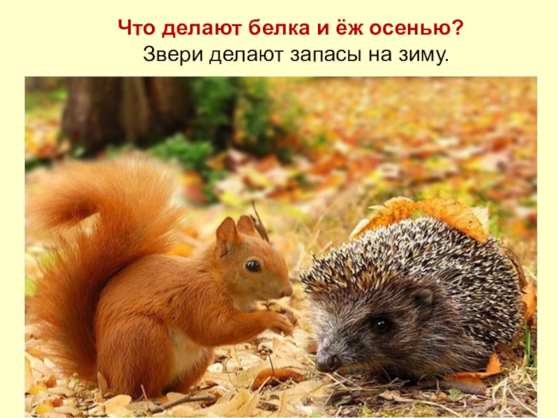 Слайд 11Что делают белка и ёж осенью?