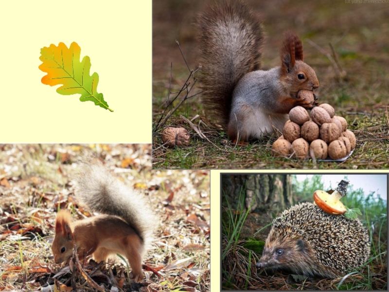 Что делают белка и ёж осенью? Звери делают запасы на зиму.