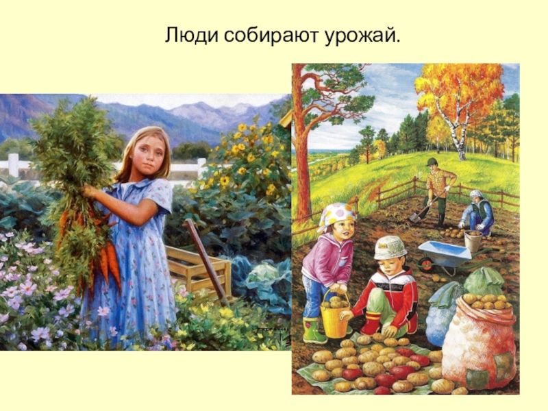 Слайд 16Люди собирают урожай.