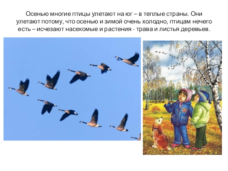 Слайд 11Осенью многие птицы улетают на юг – в теплые страны. Они