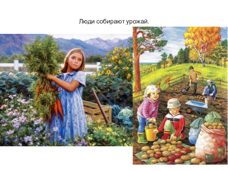 Слайд 4Осенью на улице начинает холодать. Люди одеваются теплее чем летом –