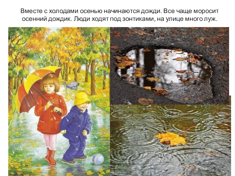 Слайд 6Вместе с холодами осенью начинаются дожди. Все чаще моросит осенний дождик.