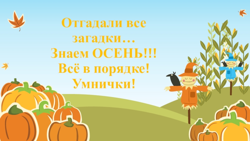 Слайд 12Отгадали все загадки… Знаем ОСЕНЬ!!! Всё в порядке! Умнички!