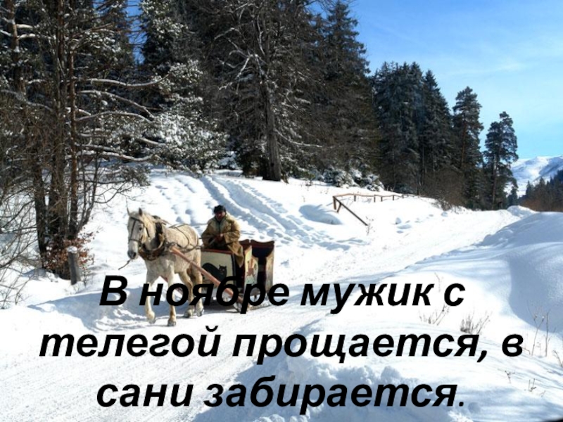 Слайд 8В ноябре мужик с телегой прощается, в сани забирается.