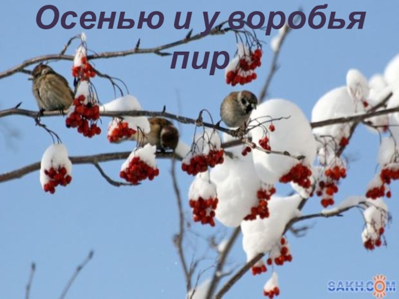 Слайд 11Осенью и у воробья пир