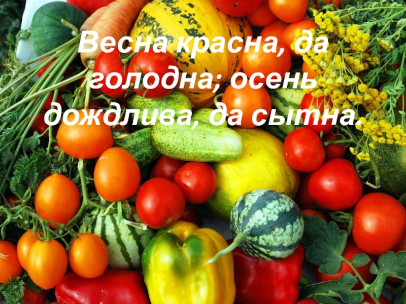 Слайд 9Весна красна, да голодна; осень дождлива, да сытна.