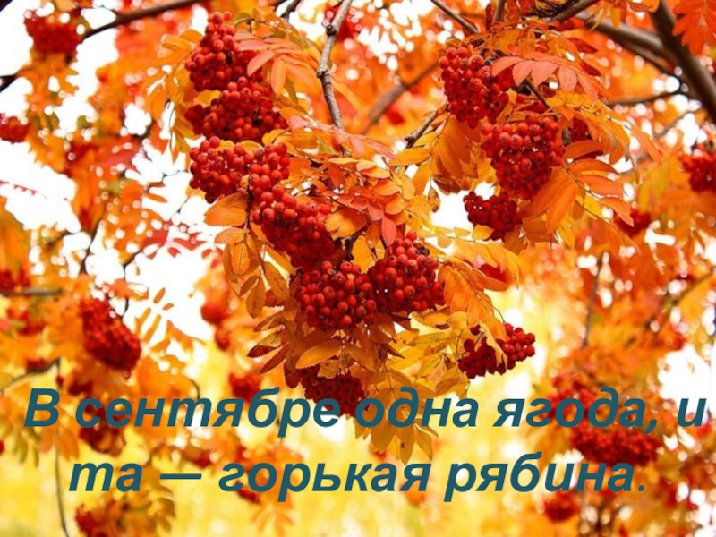 Слайд 4В сентябре одна ягода, и та — горькая рябина.
