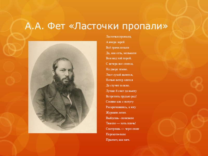 Слайд 5А.А. Фет «Ласточки пропали»
