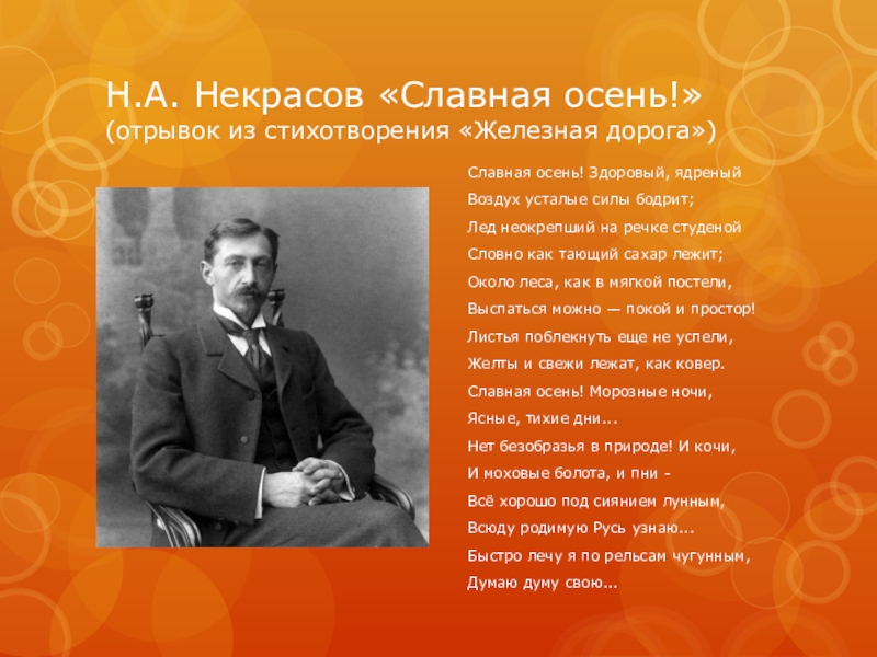 Слайд 6Н.А. Некрасов «Славная осень!» (отрывок из стихотворения «Железная дорога»)