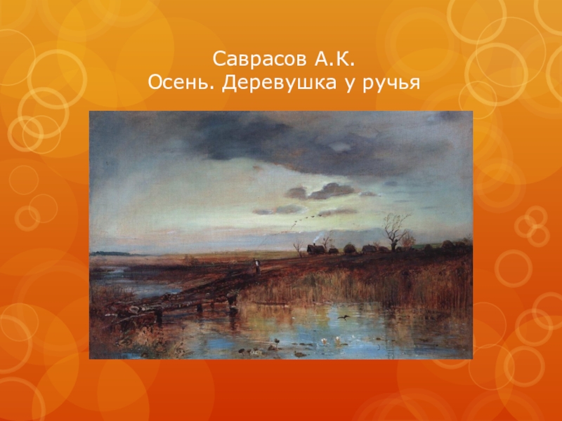 Слайд 11Саврасов А.К. Осень. Деревушка у ручья