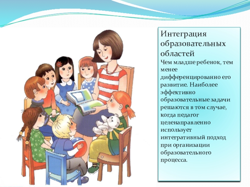 Наиболее эффективно образовательные задачи решаются в том случае, когда педагог целенаправленно использует интегративный подход при организации образовательного процесса.