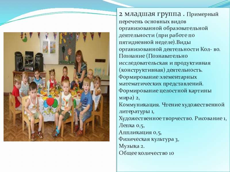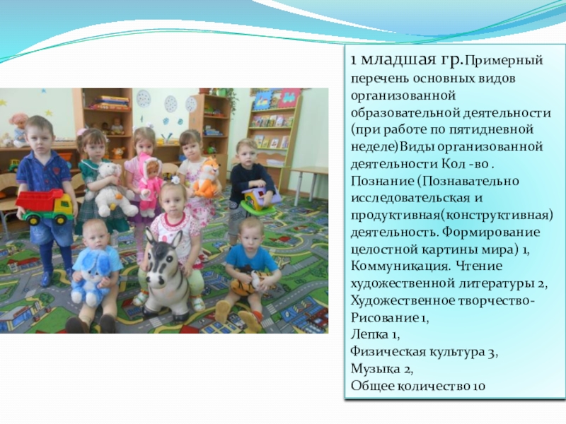 Слайд 252 младшая группа . Примерный перечень основных видов организованной образовательной деятельности