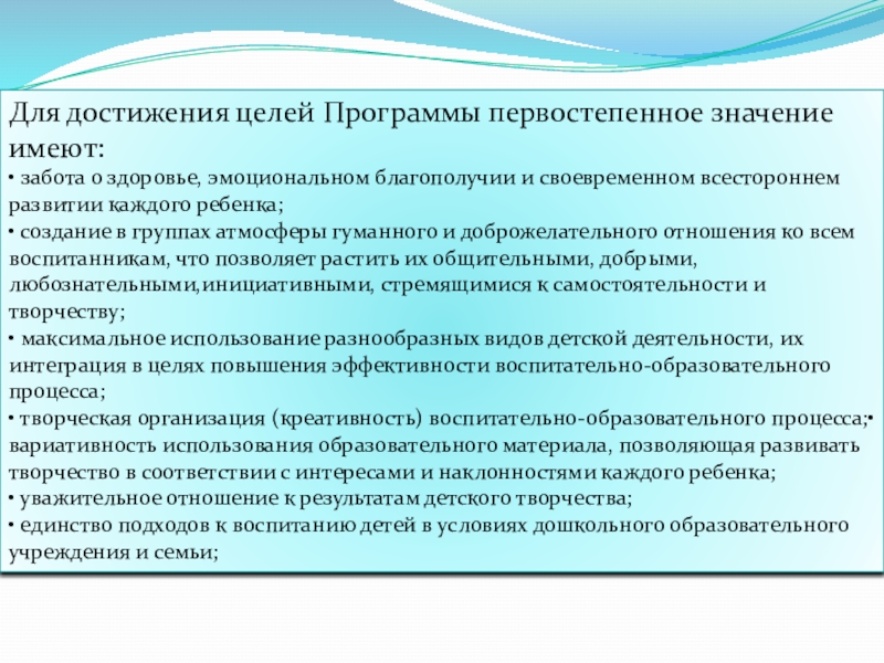 Слайд 6Для достижения целей Программы первостепенное значение имеют: