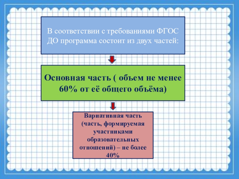 Вариативная часть (часть, формируемая участниками образовательных отношений) – не более 40%