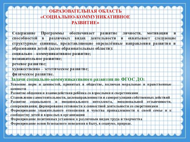 Задачи социально-коммуникативного развития по ФГОС ДО: