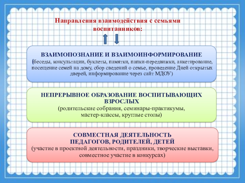 (участие в проектной деятельности, праздники, творческие выставки, совместное участие в конкурсах)