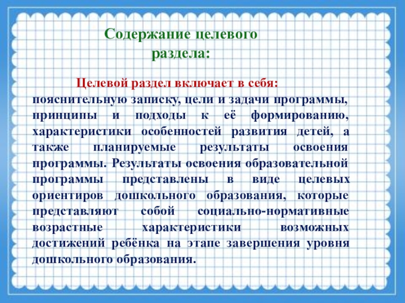 Возможности освоения ребёнком Программы на разных этапах её реализации.