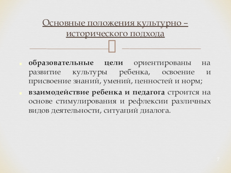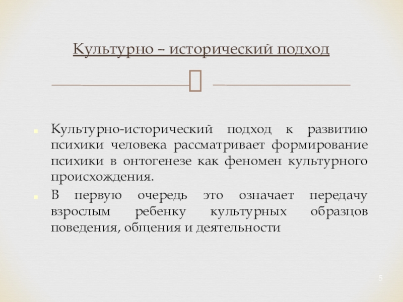 Культурно-исторический подход (Л.С.Выготский, А.В.Запорожец, А.Н.Леонтьев, Д.Б.Эльконин и др.).