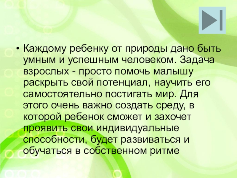 Слайд 8Каждому ребенку от природы дано быть умным и успешным человеком. Задача