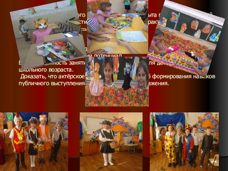 Выявить важность занятий театральной студии для детей младшего школьного возраста.