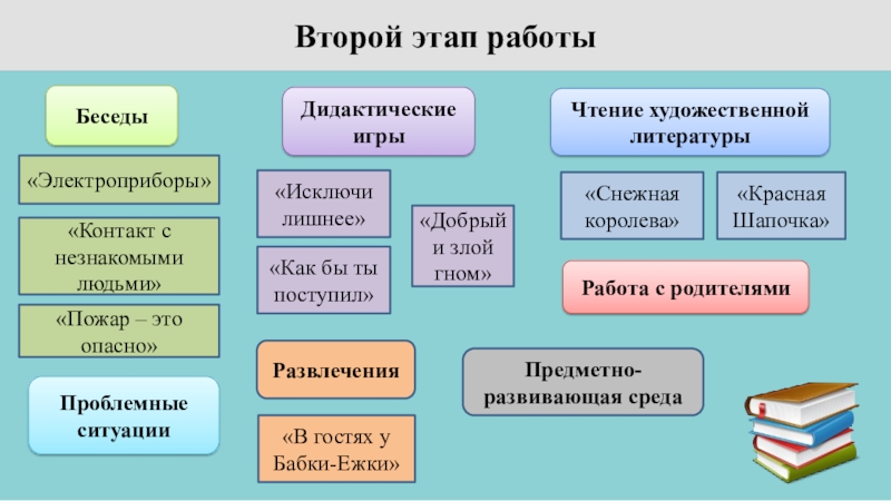 - применении поэтапной методики, обеспечивающей единство формирования знаний и умений как основы опыта безопасного поведения в быту, при активной позиции ребенка.