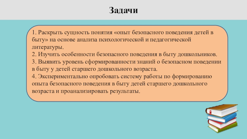 Цель исследования: изучить особенности формирования опыта безопасного поведения в быту у детей дошкольного возраста.