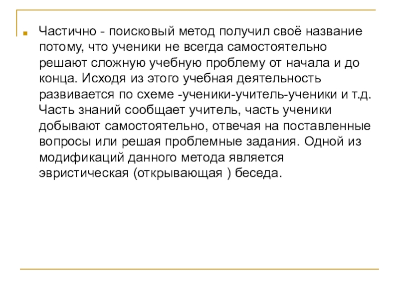 Слайд 10Частично - поисковый метод получил своё название потому, что ученики не