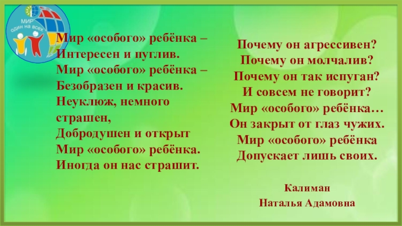 Мир «особого» ребёнка…