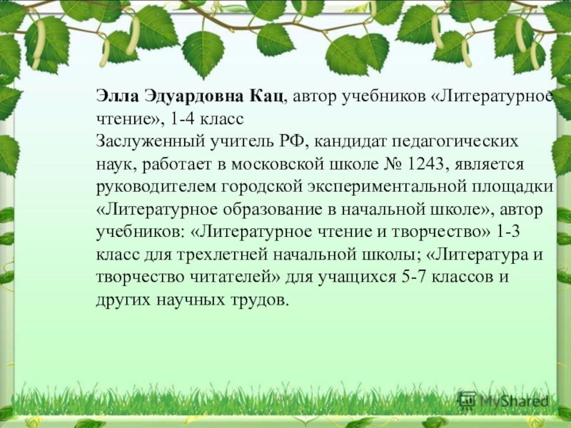 Слайд 2Элла Эдуардовна Кац, автор учебников «Литературное чтение», 1-4 класс