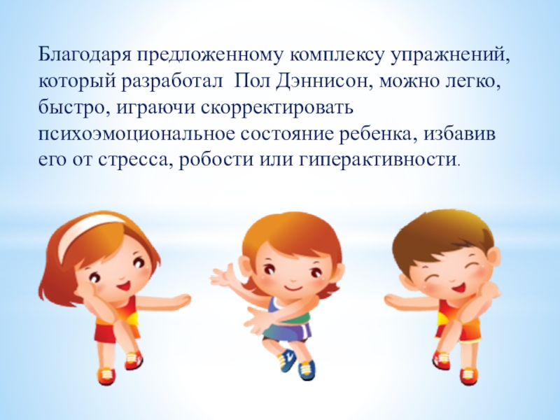 Слайд 17Благодаря предложенному комплексу упражнений, который разработал Пол Дэннисон, можно легко, быстро,