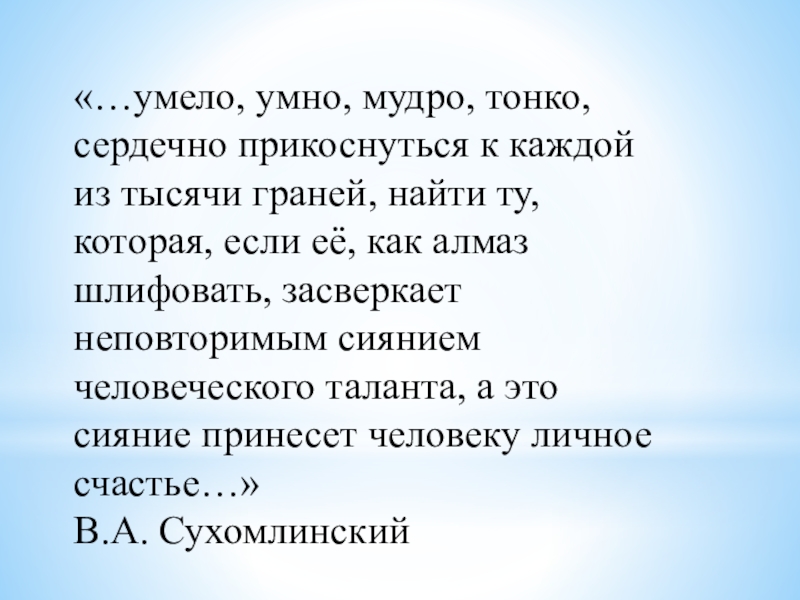 Слайд 2«…умело, умно, мудро, тонко, сердечно прикоснуться к каждой из тысячи граней,