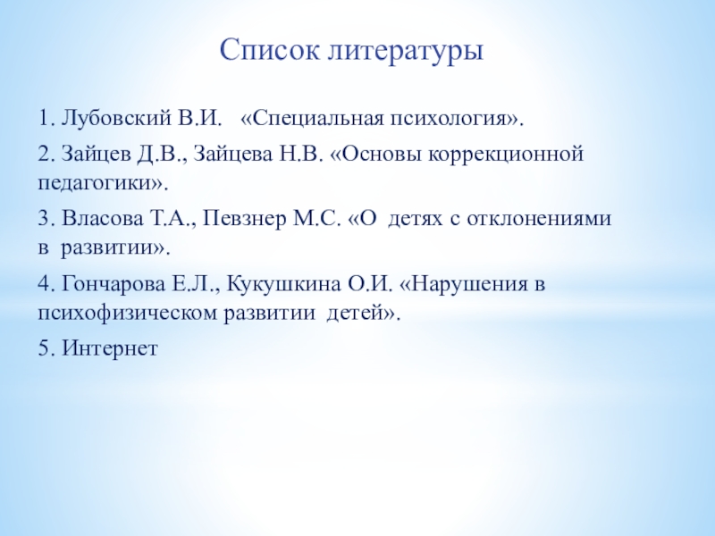 Слайд 311. Лубовский В.И. «Специальная психология».