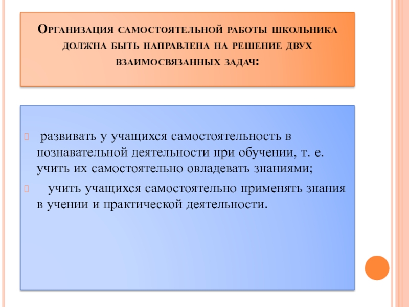 развивать у учащихся самостоятельность в познавательной деятельности при обучении, т. е. учить их самостоятельно овладевать знаниями;