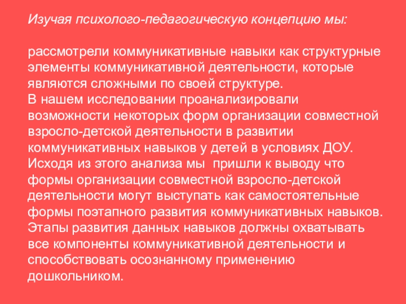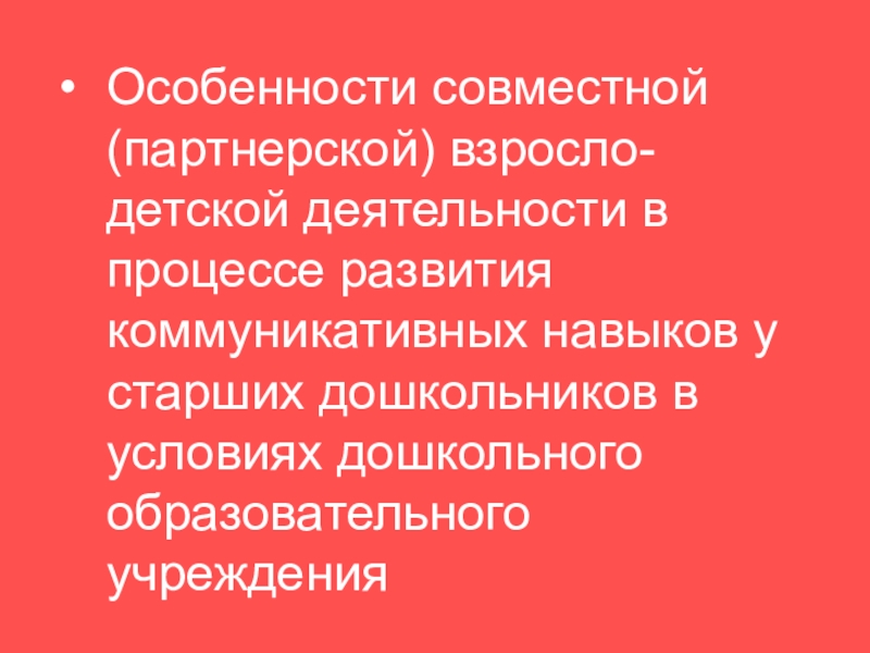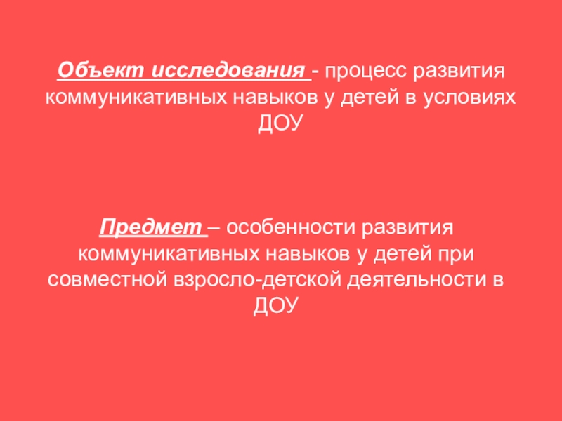 Предмет – особенности развития коммуникативных навыков у детей при совместной взросло-детской деятельности в ДОУ