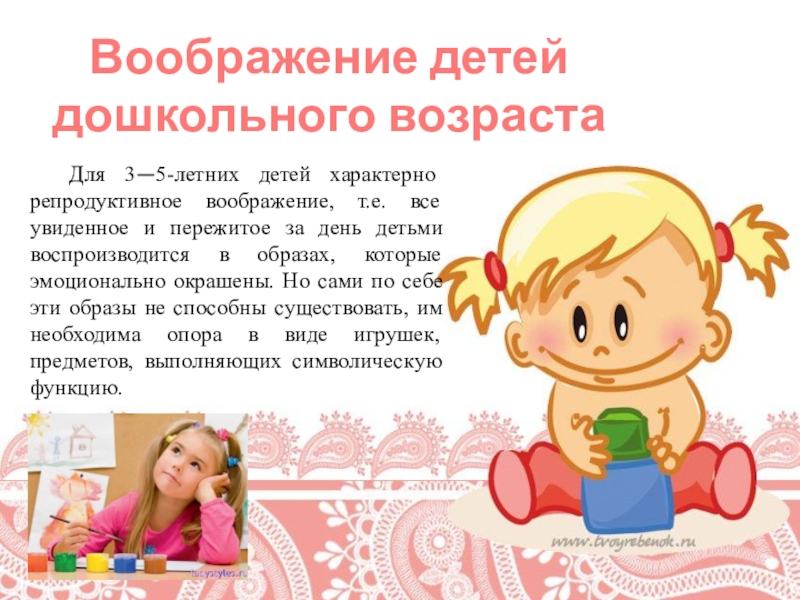 Для 3—5-летних детей характерно репродуктивное воображение, т.е.