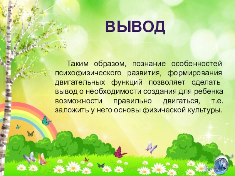 вывод о необходимости создания для ребенка возможности правильно двигаться, т.е. заложить у него основы физической культуры.