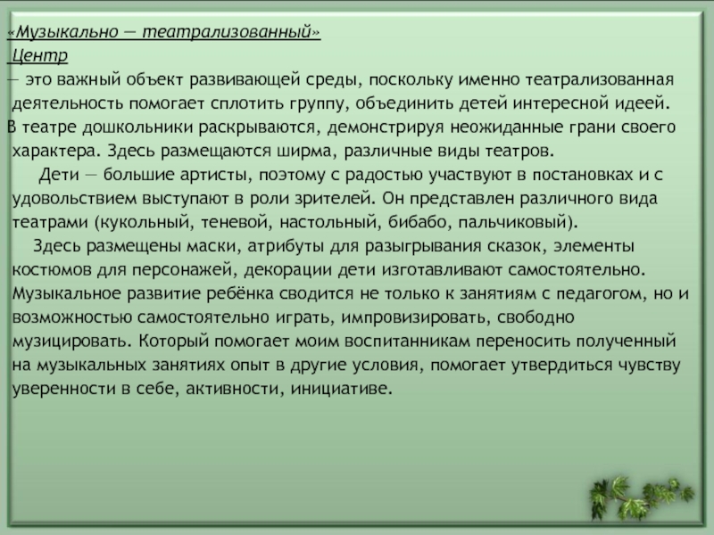 Слайд 12«Музыкально — театрализованный»