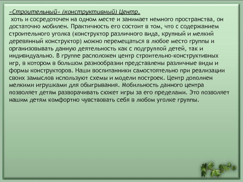 Слайд 21«Строительный» (конструктивный) Центр,