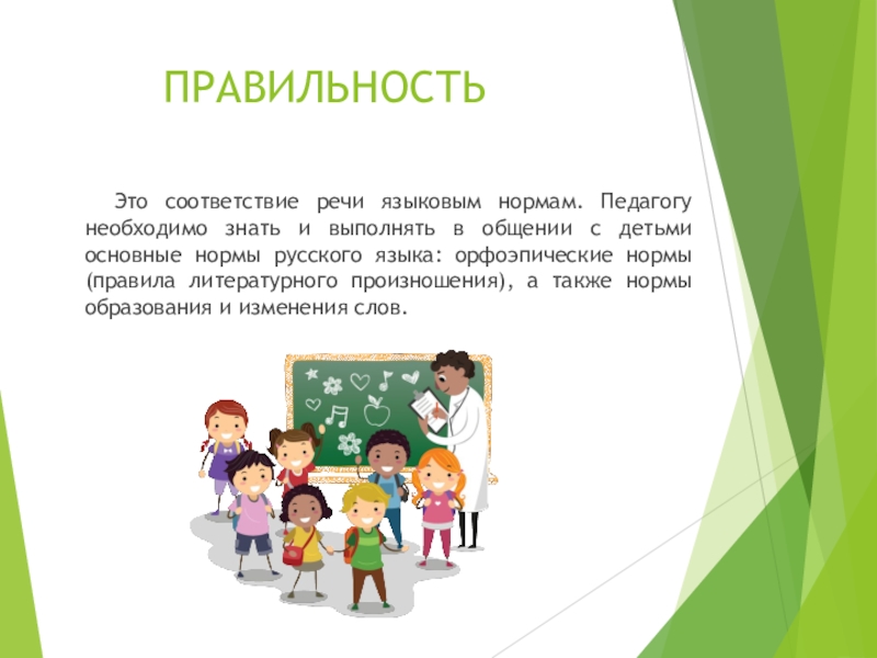 Это соответствие речи языковым нормам. Педагогу необходимо знать и