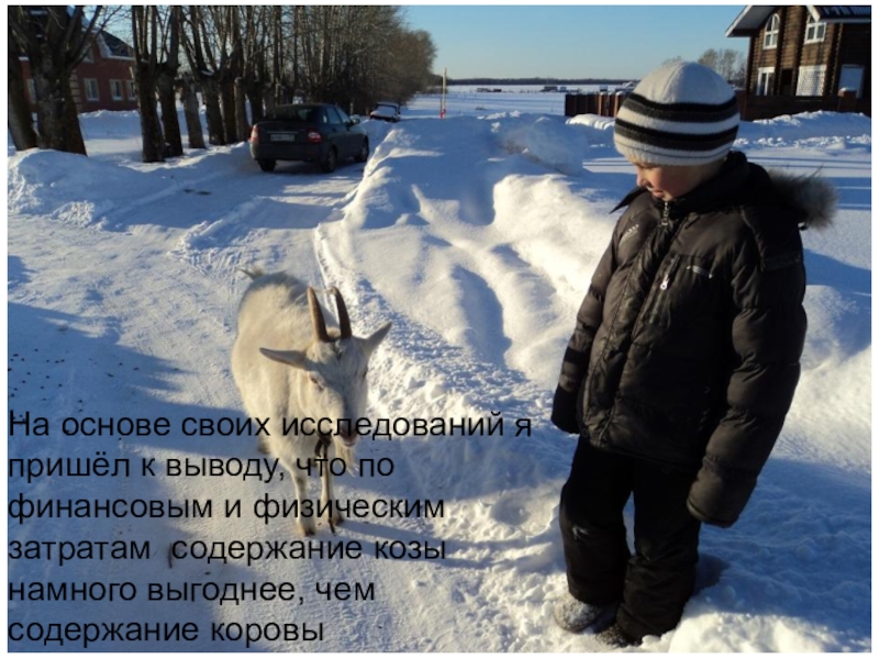 На основе своих исследований я пришёл к выводу, что по финансовым и физическим затратам содержание козы намного выгоднее, чем содержание коровы
